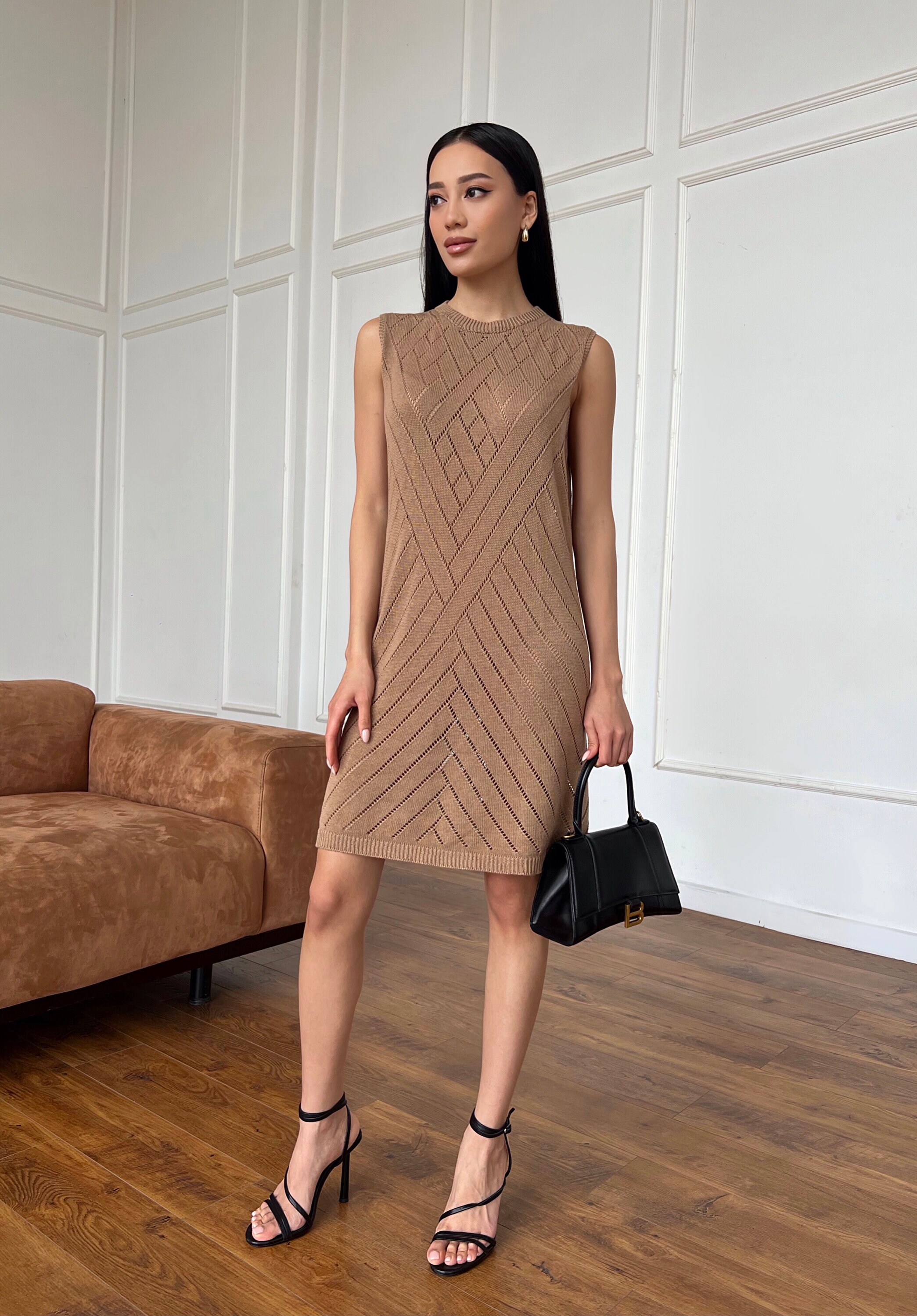Beige Openwork Knitted Midi For Women Dress Tender Fitted And Etsy Uk